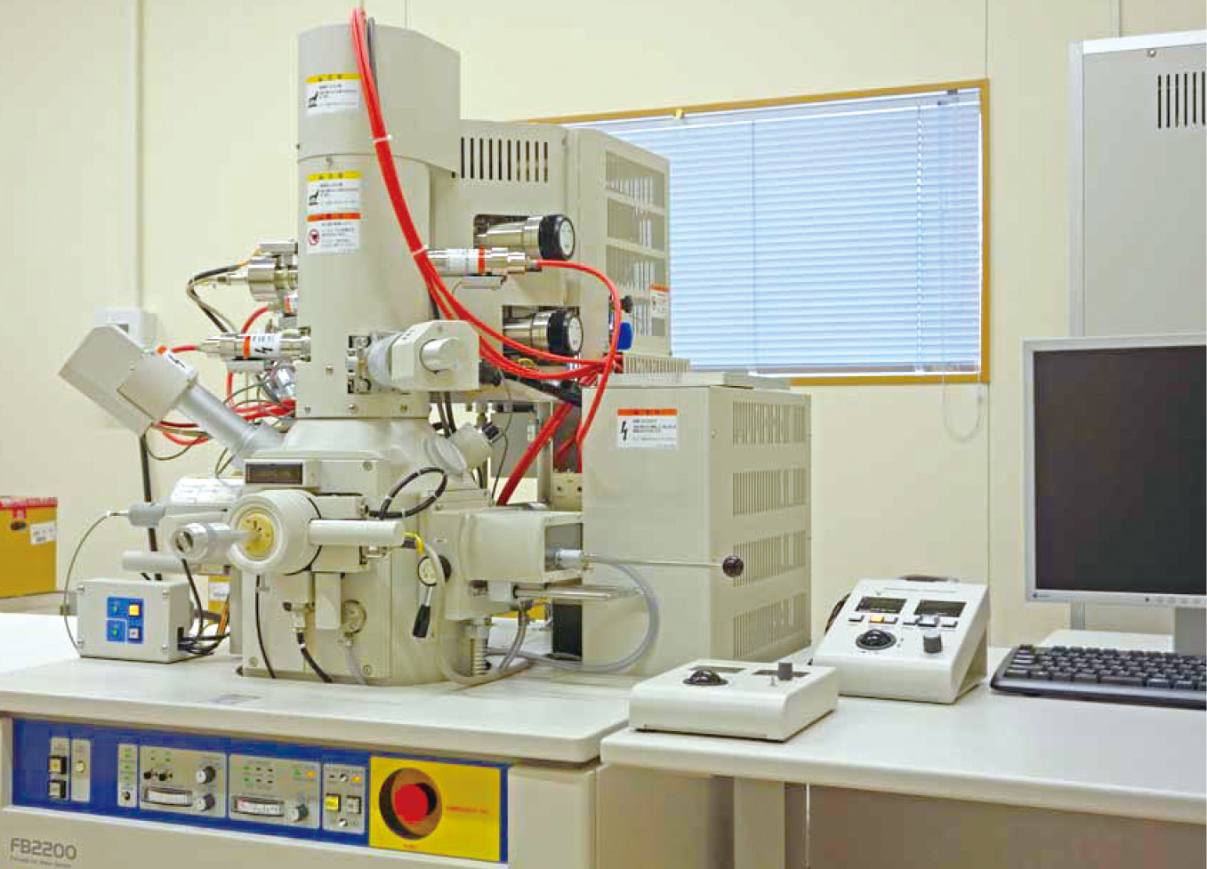 数µm~数十µmのサンプルを切り出すことができる微細加工機です。電子顕微鏡で観察する試料作製などに使用しています。