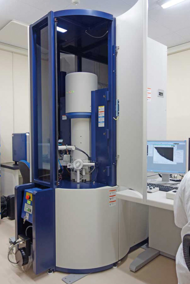 物質の構造を原子レベルの高分解能で観察できる透過型電子顕微鏡です。結晶やナノ粒子の局所構造を観察することができます。