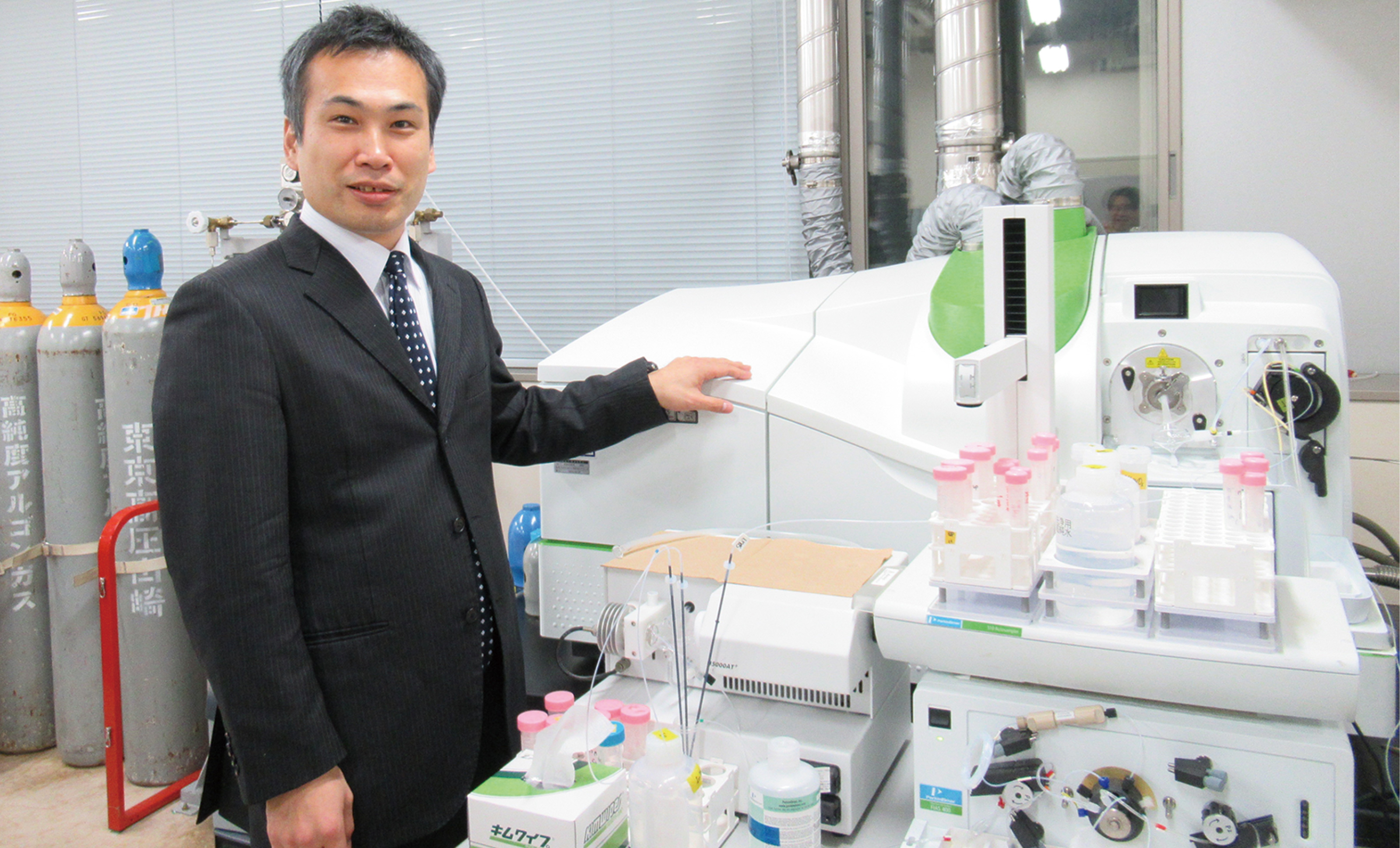 環境や生体中に存在する超微量成分を分析する、スピード・精度・感度に優れた分析システムの開発に取り組んでいます。現在特に力を入れているのが、福島第一原発の廃炉作業に必要な分析機器の開発です。事故発生後、汚染水中に含まれるストロンチウム90の濃度測定の重要性にいち早く着目、新たに開発したシステムでは、それまで2週間から1か月程度かかっていた分析時間を15~30分にまで短縮することに成功し、すでに汚染水貯蔵タンクの周囲にたまった雨水の測定に使用されています。今後の廃炉作業では、放射性物質除去装置の処理水や建屋地下の滞留水、地下バイパス水などの汚染水の測定が不可欠です。これらの測定には、線量の高さや海水の塩分、地下水のミネラル分など多くの問題があり、こうした課題に対応した分析技術の開発にスピード感をもって取り組んでいこうと考えています。