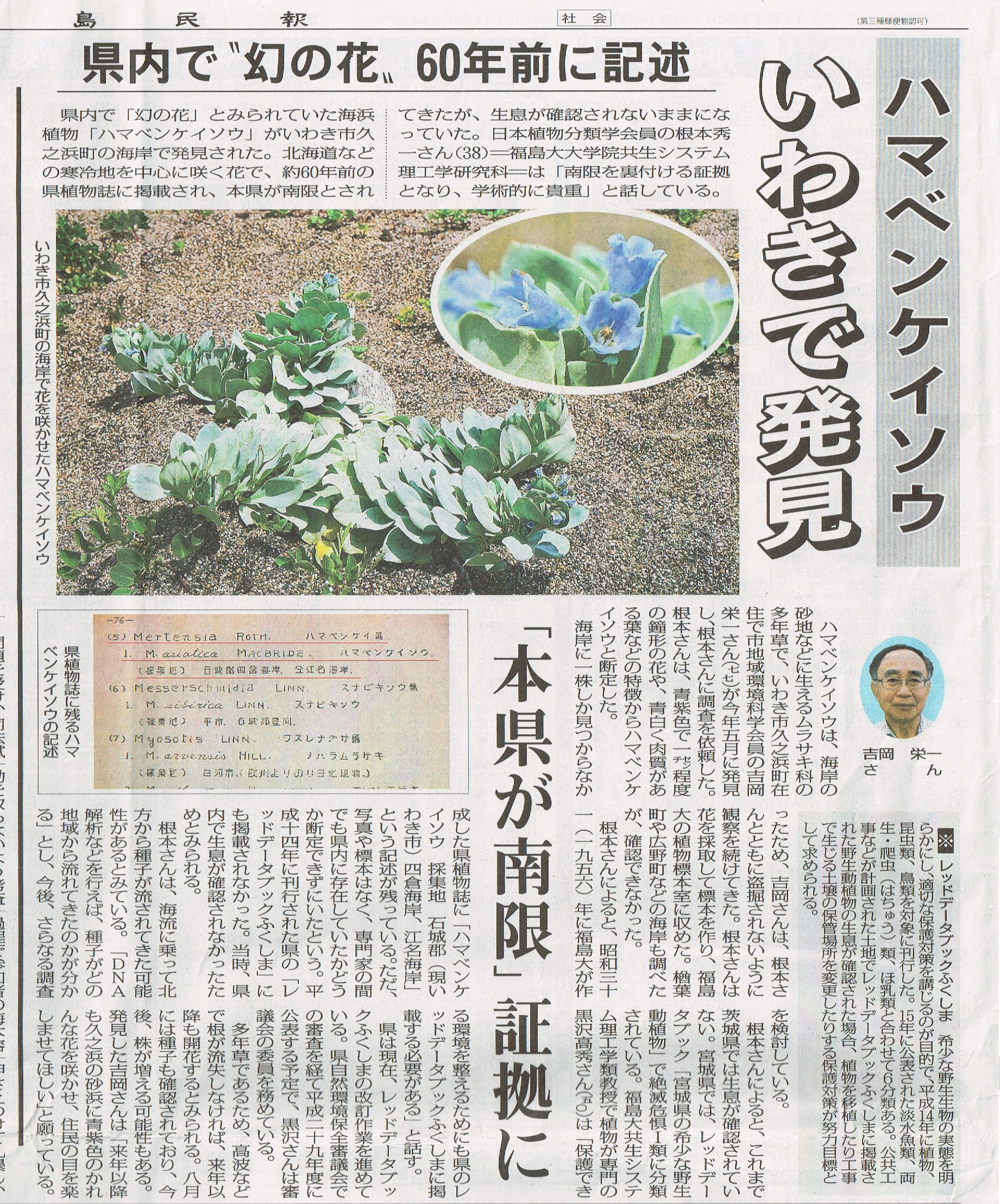 県内で60年前に生育の記録があるハマベンケイソウが発見され,