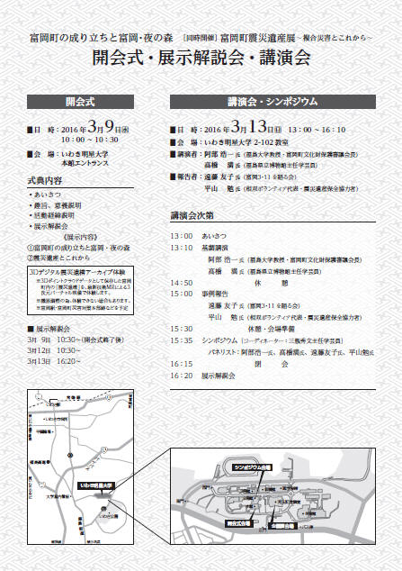 富岡町の成り立ちと富岡・夜の森」同時開催「富岡町震災遺産展~ 複合災害とこれから~」が開催されます。3月13日のシンポジウムでは,阿部浩一が講演いたします。