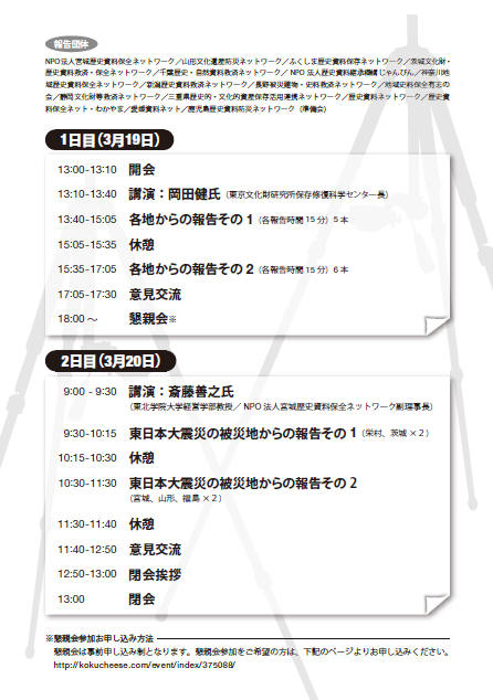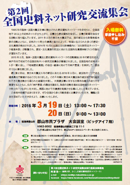 第2回全国史料ネット研究交流集会が2016年3月19日(13:00~17:30)と3月20日(9:00~13:00)に郡山市民プラザ 大会議室(ビックアイ7階)開催されます。