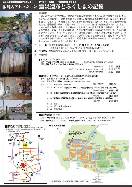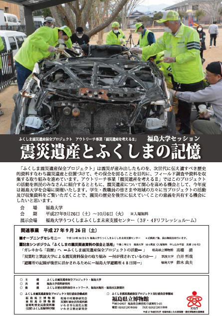 福島大学資料研究所が共催したふくしま震災遺産保全プロジェクトアウトリーチ事業 震災遺産を考えるⅡ「震災遺産とふくしまの記憶」展(2015年9月26日~10月6日)を活動報告に掲載しました。