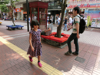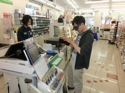 一番町四丁目商店街でのロービジョン体験。小学生も参加できます。