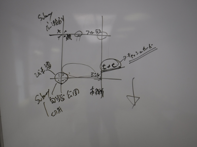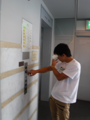 紙コップを使って作成した中心暗転ゴーグルをつけて,エレベータのボタンを探してみました。