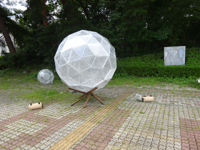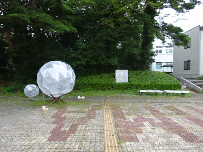 「希望のヒカリ」なるオブジェが,図書館周辺に設置されている。資料によれば,福島大学創立70周年記念行事の一環として採択された,学生による事業のようだ。