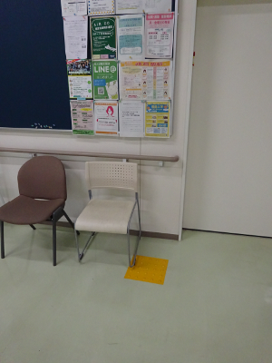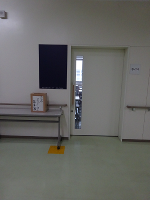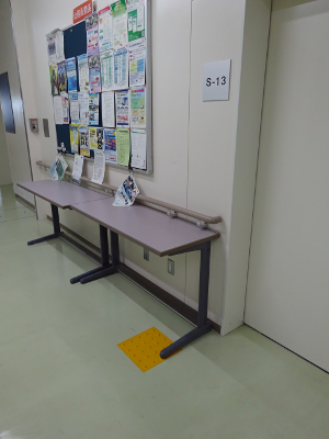 S棟の各教室の入口前には,点字ブロックが1つずつ設置されている。このような設置方法であるのは,一定程度の歩行訓練を受けた視覚障害者は,建物内は壁伝いで歩くことが多く,そのような人にとっては部屋の入口があることを知らせるブロックを設置するだけで十分だからだ。