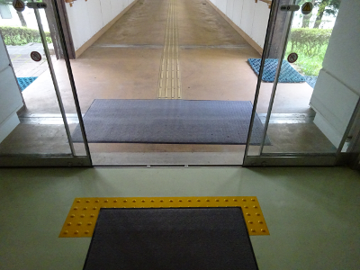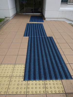 なお,経済経営学類棟の入口は,点字マットをよけてマットが設置されている。なので,このようなことが起こっているのは,建物の管理者の意識の問題である可能性が高いと考えるのが妥当であろう。