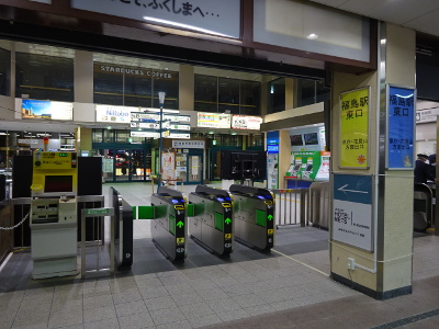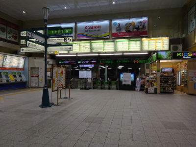 April 10 (night time), 2020: The main concourse (East side) of Fukushima Station