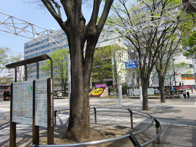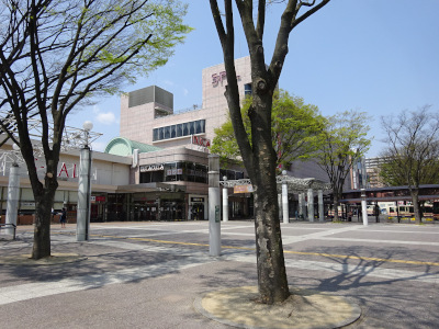 At around the noon on the Saturday in the Golden Week holidays, there were few people passing through the Station Square of Fukushima Station.