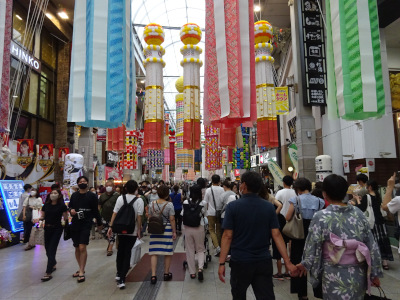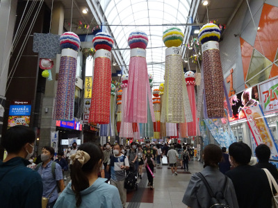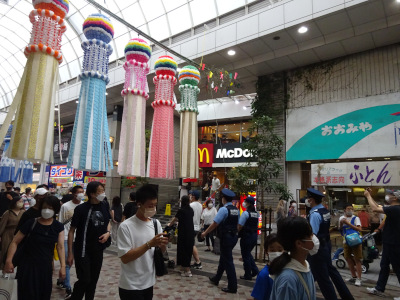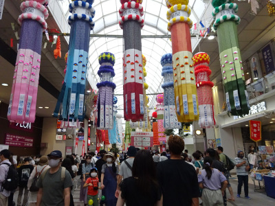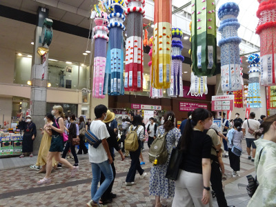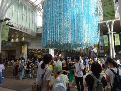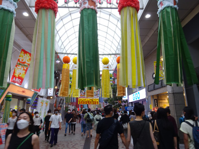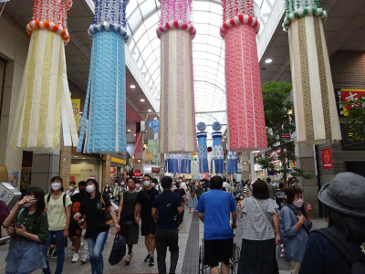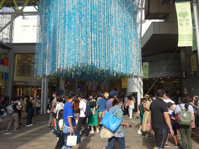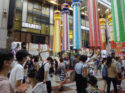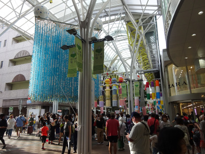 Many people passed around the Fujisaki Department Store, too. The Tanabata