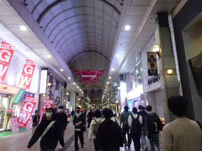 On the first night of the last half of the Golden Week holidays, many people passed through Nakake Street in front of pachinko salons. Many groups of people who went back from drinking parties talked in loud voices while they walked. A few people went in and out pachinko salons around the recording points.