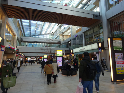 Also, many people passed through the pedestrian deck of the Sendai Station.