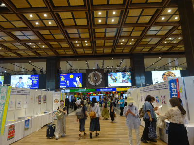 The summer vacation of elementary and high schools began amidst the 7th wave of the infection of COVID-19 that had come here in Sendai. Many people were at the main concourse of Sendai Station on the first Saturday of the summer vacation season. At the concourse, an introduction to private high schools, universities, and professional schools was held, and many visitors came to the high school side, but not so many visitors came to the university and professional school side.