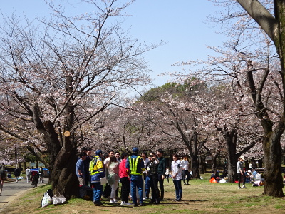 Cherry blossoms in Yoyogi Park were fully bloomed. Many people came to this