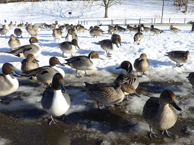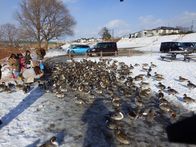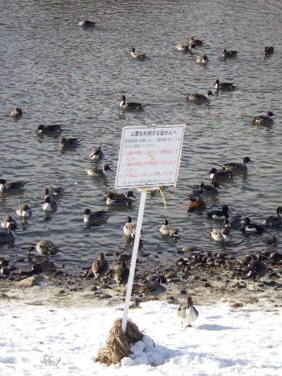 Ducks and swans have flown to the Abukuma river near Kotori no Mori (Forests for birds). When I visited the place, there were so many ducks and a few swans.