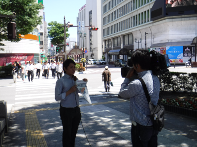 Local TV news show crews were shooting a scene that a staff of a newspaper