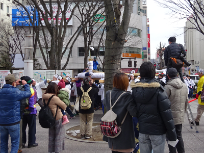 Tengu (a long-nosed goblin) was dancing with the music, as usual year.