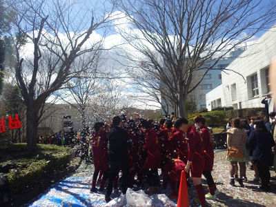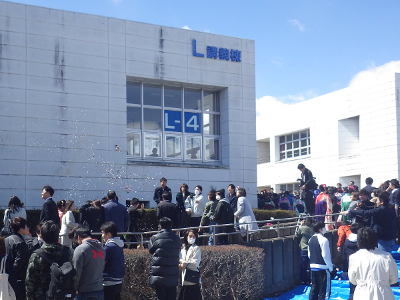 the grads coming out from the gymnasium where the ceremony was held. This was