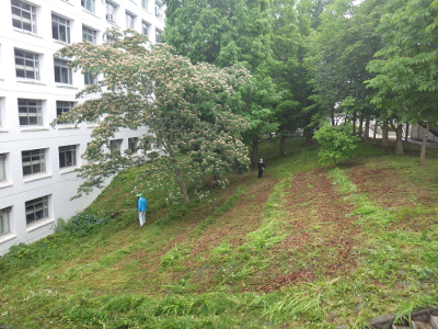 Mowing as a preparation for the the university's open day for highschool students was being done as usual year.