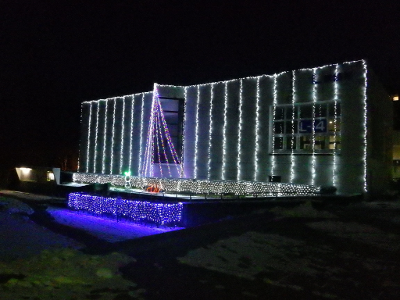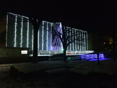 イルミネーションの左側に設置されたテレビは,音を消した状態で,何かの番組を放映したままであった.