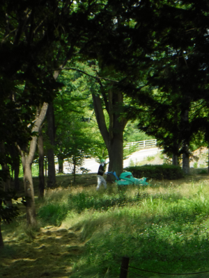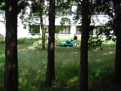 録音中,休み時間に差し掛かったようで,手持ちの草刈り機の人は順次作業を停止し,図書館の脇の方へと移動していった.