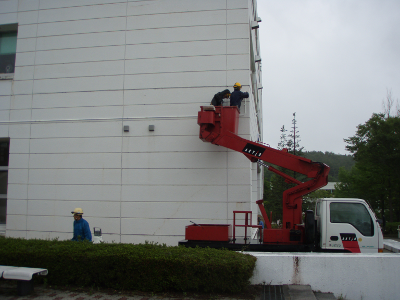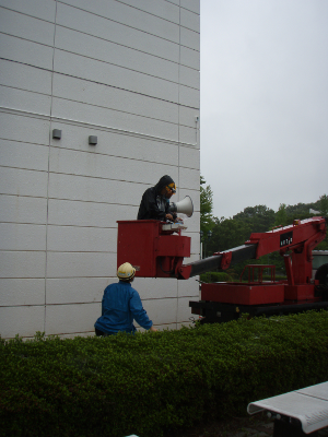 Loudspeakers for the emergency information were being set on the wall of the