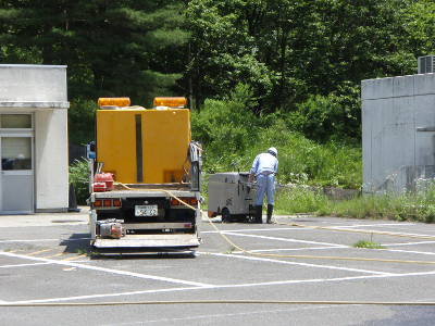 The work of the day was cutting the pavement of the parking area in order to