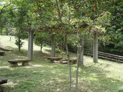 The desk under the wisteria trellis near the entrance of the forest, which I used to set the recorder, decayed, so I could not use it.
