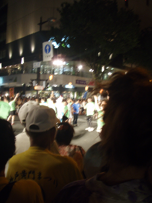 vehicular traffic. A Dancing parade on the Waraji festibal, called "Dancing