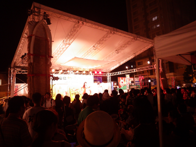 At the corner of Machi-naka Square, I could hear the mixture of extremely