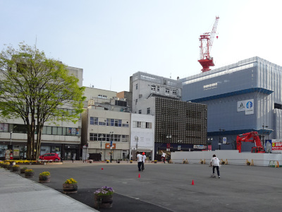 On the Saturday in the Golden Week holidays, some young people were exercising skateboard.