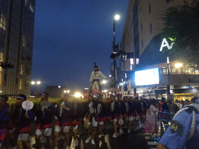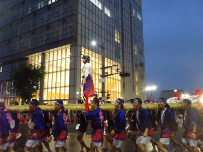 As the opening of the parade, the O-Waraji (Japanese Big Sandal) came in front of Machi-naka Square.