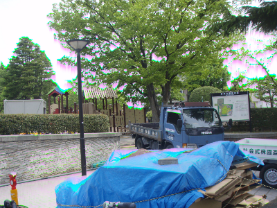 Maintenance of the play equipment still continued at the Shinhama park.
