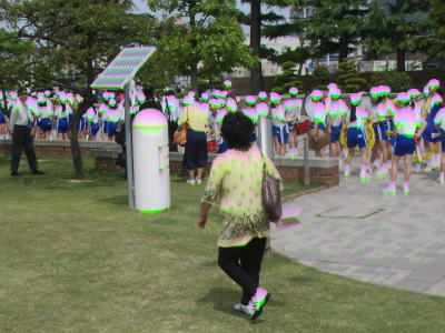 The monitoring post (right photo) shows that the radiation level of the