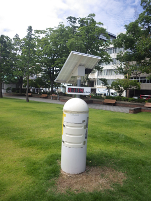 The monitoring post shows that the radiation level of the day was 0.114 μSv/h.