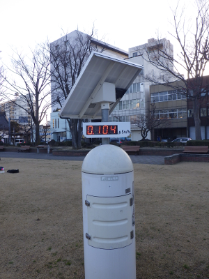 The monitoring post shows that the radiation level of the day was 0.104 μSv/h.