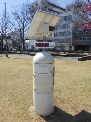 The monitoring post shows that the radiation level of the day was 0.107 μSv/h.
