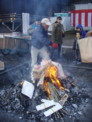 Don-do Yaki festival was held at Gokoku Shrine as usual. Don-do Yaki festival