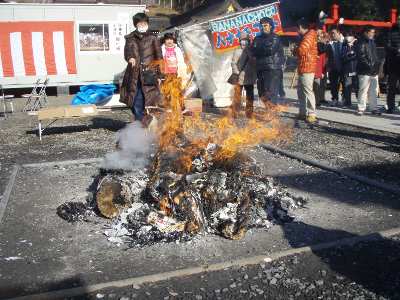 Don-do Yaki festival was held at Gokoku Shrine as usual. Don-do Yaki festival