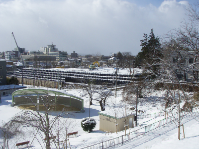 The monitoring post showed 0.238 μSv/h. Despite shielding effect of snow,
