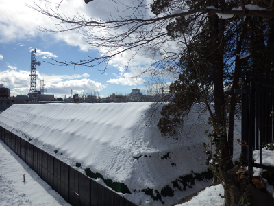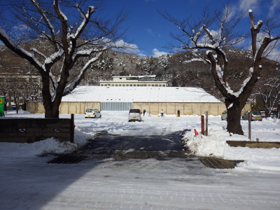 信夫山のふもとの仮置場前にある駐車場では除雪作業が行われていた.