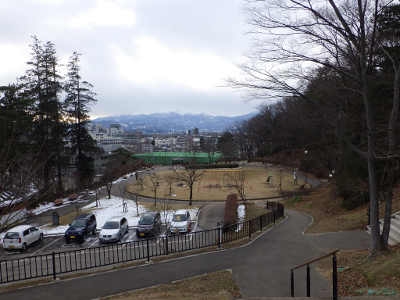 Around 5 children were playing cheerfully at the Mt. Shinobu park.