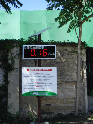 The monitoring post near the site showed 0.16 μSv/h. (right picture)