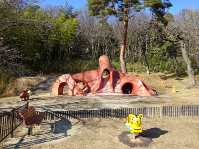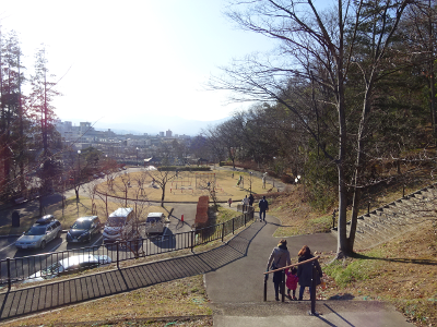 In a warm sunshin in a winter, many children were playing at this park cheerfully.