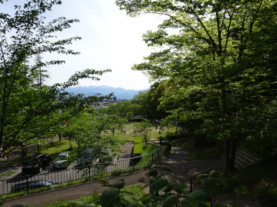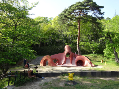 In fresh green in April, many families were playing in Mt. Shinobu Park.
