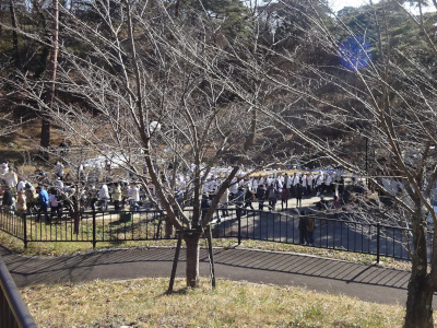 The parade of O-Waraji (Big Japanese Sandal) passed through the road next to the fixed recording point at Mt. Shinobu.