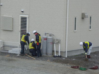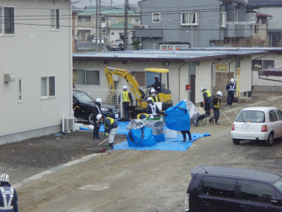 There were more than ten workers. They removed the contaminated soil, dredged a