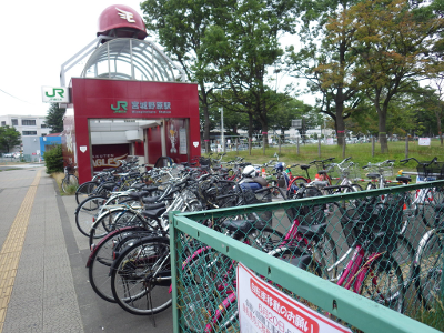 国立仙台医療センターの改築工事のため,自転車の駐輪場所を失った人たちが,宮城野原駅前に違法駐輪を始めた。あろうことか,点字ブロックの上に停めている自転車も少なくない。