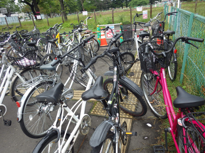 雨が止んだため,また,違法駐輪の自転車の数が増えた。